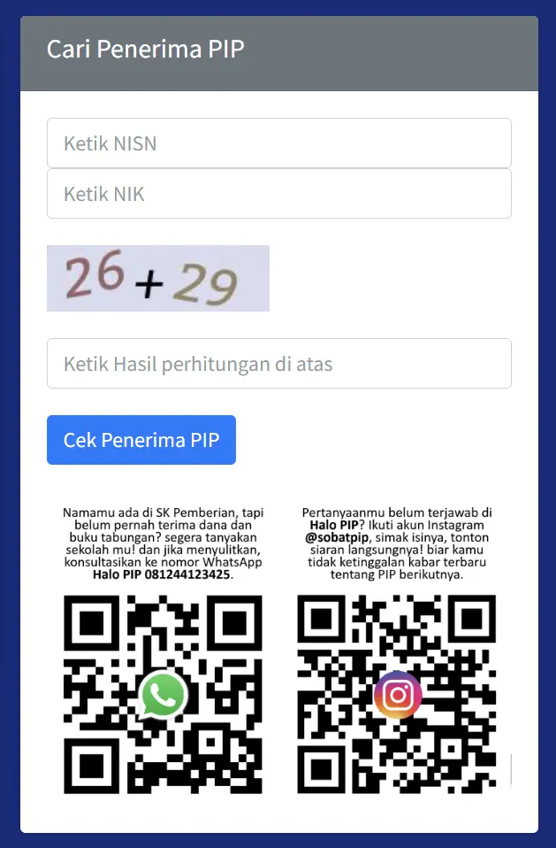 Tekan tombol Cek Penerima PIP.